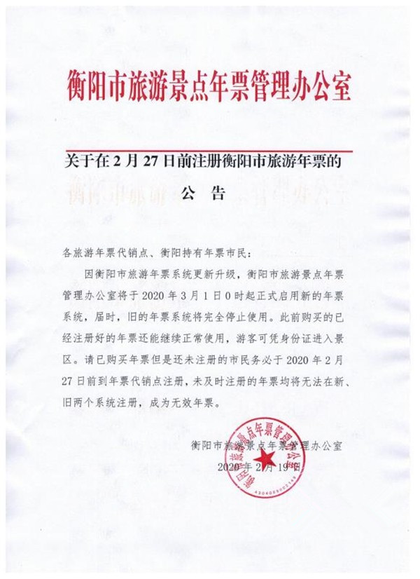 3月1日起衡陽市正式啟用新的旅游年票系統(tǒng)